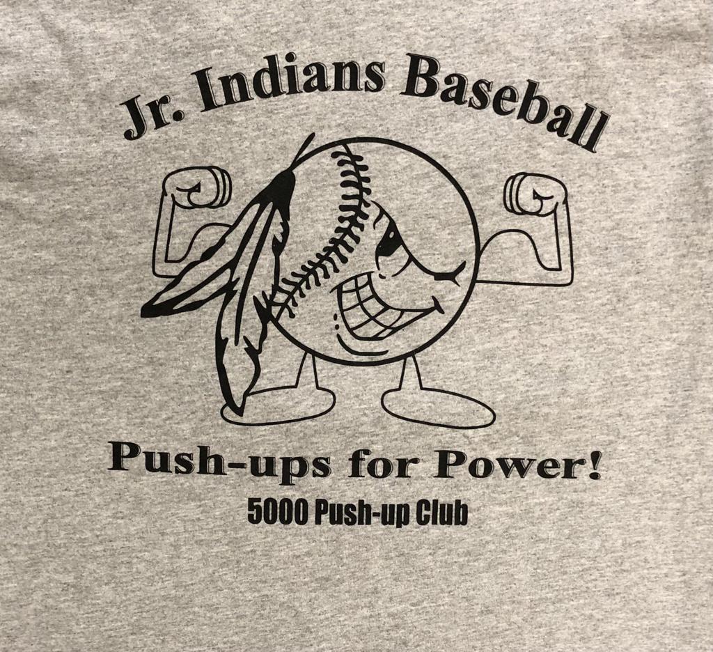 Jr Indians Baseball logo on Push-up Club T-shirt